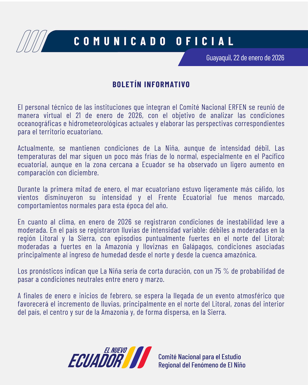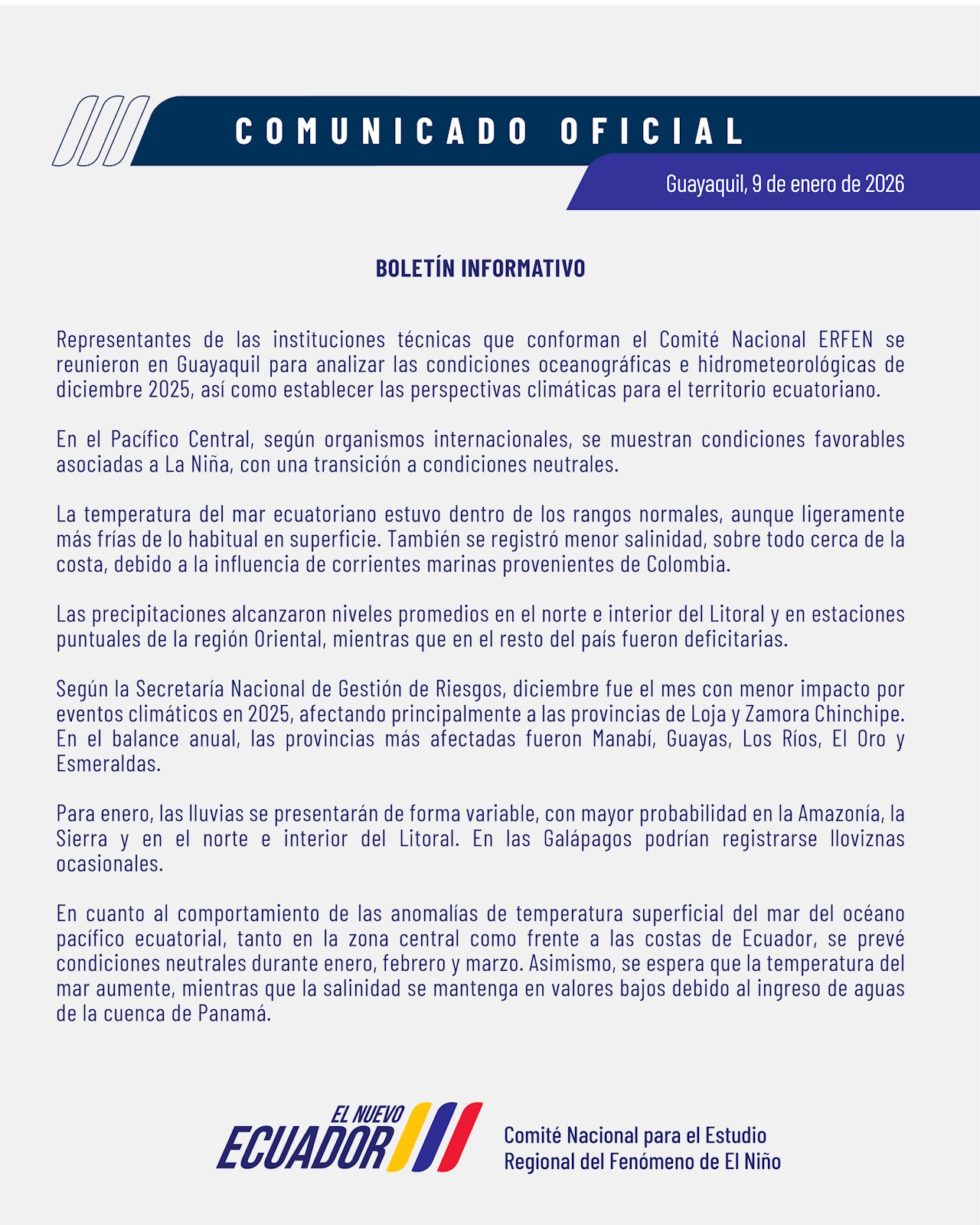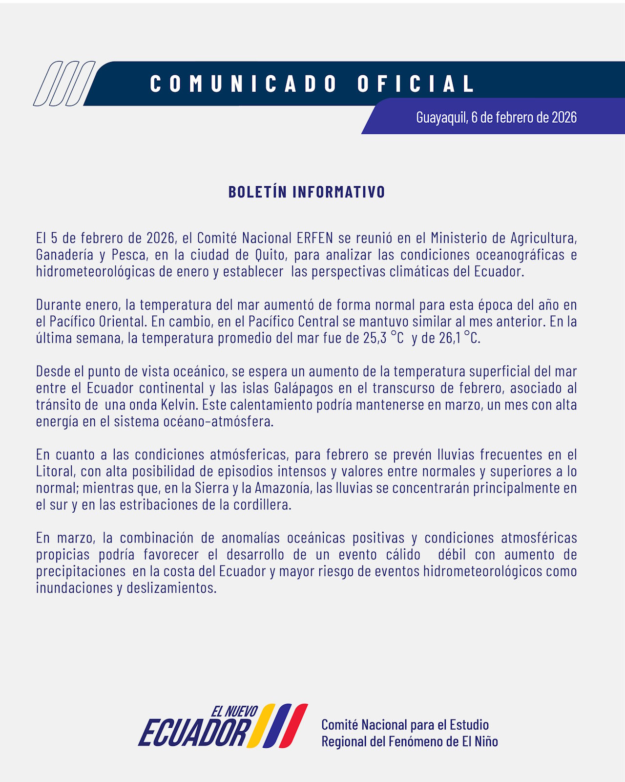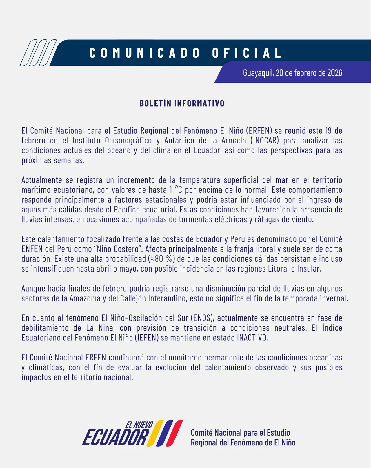 Como Instituto Público de Investigación de Acuicultura y Pesca, buscamos contribuir con el análisis de información oceanográfica, meteorológica y biológica-pesquera para beneficio de las reuniones del Comité Nacional ERFEN.